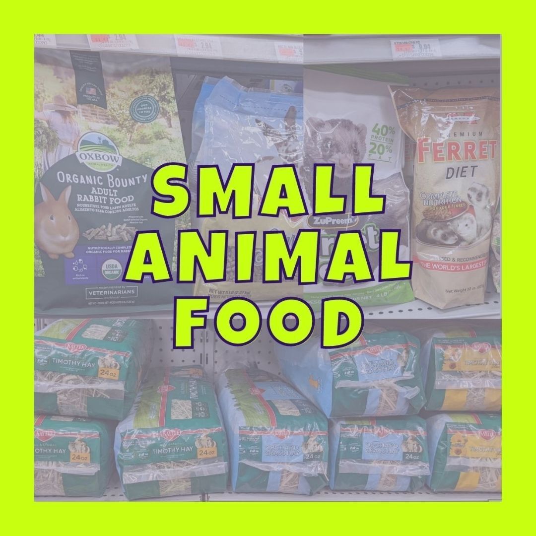 Food for rabbits, guinea pigs, hamsters, rats, mice, hedgehogs, ferrets, and more!
