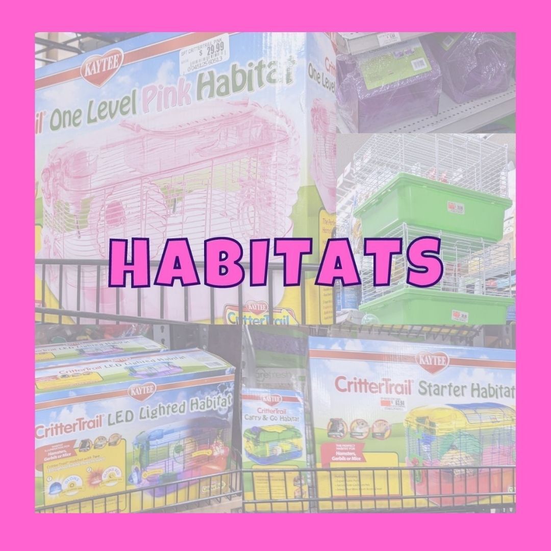 We have habitats, habitat accessories, and travel carriers for your small animals.