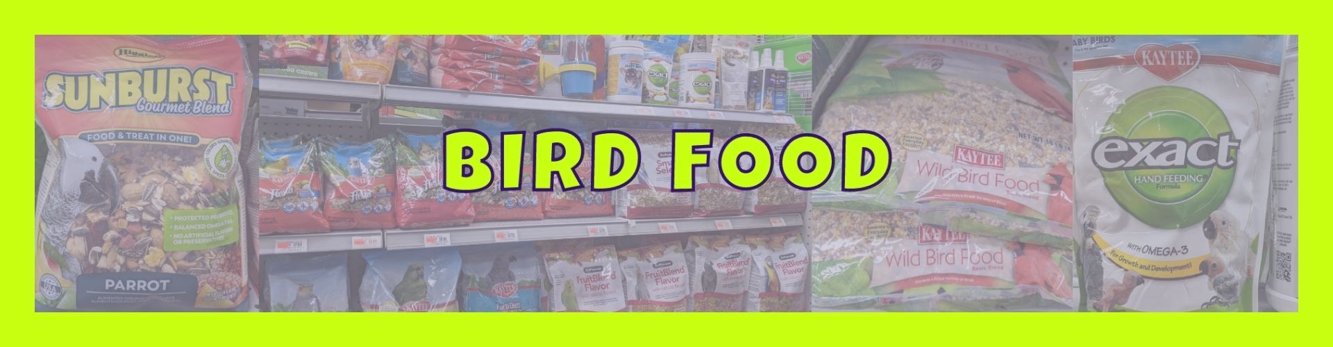 Food for parrots, cockatiels, finches, canaries, lovebirds, conures, and more. Bird seed blends, hand feeding formulas, mealworms, dried fruit, and more. Brands such as Kaytee, Sunburst, and ZuPreem in stock.