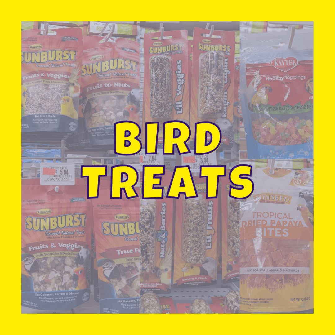 Treats that birds of all kinds love. Mealworms; dried fruit, veggie, & nut blends; treat sticks; and more. Brands such as Sunburst, Sunseed, & Kaytee in stock.